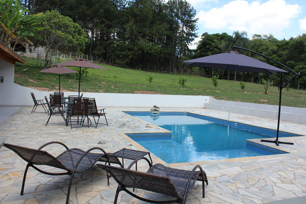 Aproveite para desfrutar dês uma piscina deliciosa, com 1,50m de profundidade e "prainha" de 40cm para a criançada bagunçar e se divertir.